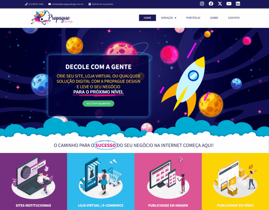 A Propague Design é uma Agência web completa, foi fundada com o propósito de fornecer serviços digitais, como criação de sites, criação de lojas virtuais (e-commerce), marketing digital, hospedagem e muito mais. A Ideia da nossa agência é elaborar projetos únicos e exclusivos para os nossos clientes, seja ele qual for, de um simples banner, até um site mais complexo, o nosso objetivo é sempre superar as expectativas. Continue Lendo…